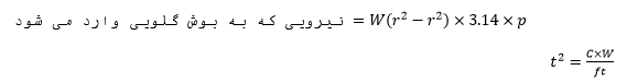 فرمول تجربی که برای محاسبه ضخامت بوش گلویی به کار می رود برابر است با: