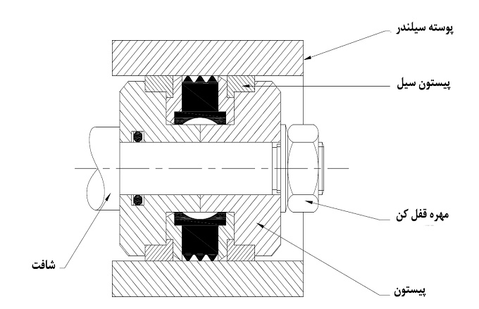 4- برای محافظت از سیل ها و جهت آسان شدن مونتاژ نوع جدیدی از پیستون سیل های فشرده به صورت دو تکه ساخته می شود.